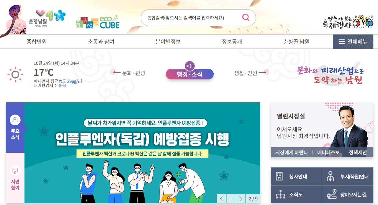 - 행정 정보 공개: 남원시의 행정 정보를 공개하고 있습니다. 예산 집행 내역, 각종 통계 자료 등을 확인할 수 있습니다.