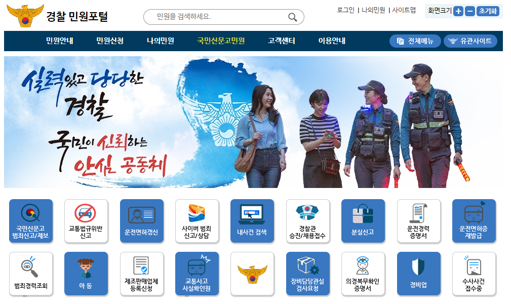 각종 민원은 직접 방문하여 신청하는 방법과 경찰 민원포털을 통해 온라인 신청을 할 수 있습니다. 간편하게 인터넷으로 민원 업무를 보고 싶다면 경찰 민원포털에 방문하시기 바랍니다.